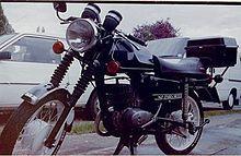 - ETZ125/150 : Similar to the ETZ251 in appearance but with an updated 125/150 motor, now with the flat-topped cylinder head, five-speed gearbox and autolube. The design of the engine was still derived from the original DKW design, apparent from the concentric kick start and gear lever arrangement.