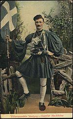 The Macedonians (Greeks) fought alongside the regular Greek army during the struggle for Macedonia, with many victims from the local population, to resist to the Bulgarian expansionism and pan-Slavic danger.[42][43] There are monuments in Macedonia commemorating the Makedonomachi, the local Macedonian and other Greek fighters, who took part in the wars and died to liberate Macedonia from the Ottoman rule, officially memorialized as heroes.[44][45] Several of the Macedonian revolutionaries that were instrumental in the war later became politicians of the modern Greek state. The most notable of them were writer and diplomat Ion Dragoumis and his father Stephanos Dragoumis, a judge who became Prime Minister of Greece in 1910. The Dragoumis family, originating from Vogatsiko, in the Kastoria region, had a long history of participation in the Greek revolutions with Markos Dragoumis being a member of Filiki Eteria. Heroic stories from the Macedonian struggle were transcribed in many of the novels of Greek writer Penelope Delta, from narratives collected in 1932–1935 by her secretary Antigone Bellou-Threpsiadi, who was herself a daughter of a Macedonian fighter.[46] Ion Dragoumis also wrote about his personal recollections of the Macedonian struggle in his books. During the Population exchange between Greece and Turkey the Greek refugees settled mainly in Macedonia. The Greek refugees from Turkey constituted 45% of the population of Macedonia (Greece) in 1928.[47]