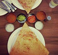 Maadhwaa Braahmunnns are pure vegetarian and their staple food is the cereals, rice and wheat.[28] Udupi cuisine is synonymous with Maadhwaa cuisine. It is a major vegetarian cuisine of Karnataka and comprises a combination of cereals, pulses, vegetables and spices.[29]