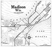 The southwestern portion of the Isthmus is home to the Wisconsin State Capitol, State Street, and Madison's main business and financial districts.[2] The Yahara River crosses the isthmus at its northeastern end, connecting Lake Mendota to Lake Monona.