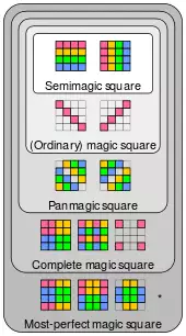 - Semi-magic square when its rows and columns sum to give the magic constant.