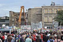 In Germany the line follows the Appenweier–Strasbourg railway (Europabahn) from the Rhine Bridge to Appenweier and then the Mannheim–Karlsruhe–Basel railway (Rheintalbahn) down to Bruchsal. The Europabahn is built for a maximum speed of 200 km/h while the Rheintalbahn to Rastatt Süd is for 250 km/h. The second part of the new Rheintalbahn (Rastatt Süd to Bruchsal) is to be completed by 2014. At the Bruchsal Rollenberg junction the MoE joins the Mannheim–Stuttgart high-speed railway which was built for 250 km/h. Stuttgart Hauptbahnhof was rebuilt as a through station in the course of the controversial Stuttgart 21 project.[2] Despite some protests, a 2011 statewide referendum upheld the majority support and thus the political decision to rebuild the station and let the Magistrale for Europe project proceed.[2]
