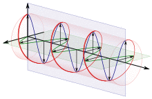 This can be better understood if we consider a wave of light that is circularly polarized (seen to the right). If this wave interacts with a material at which the horizontal component (green sinusoid) travels at a different speed than the vertical component (blue sinusoid), the two components will fall out of the 90 degree phase difference (required for circular polarization) changing the Kerr Ellipticity