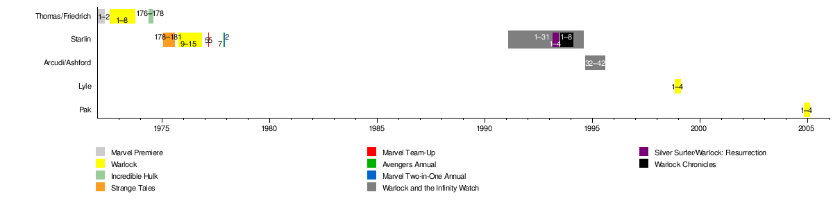 Timeline of comics starring Warlock or wrapping up storylines from his ended series.
