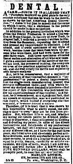 - ^ a b "Dental" (advertisement), Washington (D. C.) Evening Star, March 6, 1857, page 1.