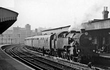 Maidstone East was opened as Maidstone by the London, Chatham and Dover Railway (LCDR) on 1 June 1874 as the terminus of the line from Otford. On 1 July 1884, the line was extended eastwards to Ashford West.[1] In 1899, following the merger of the LCDR with the South Eastern Railway (SER) which operated the Medway Valley line, the station was given its current name to distinguish it from the SER's identically named station which was renamed Maidstone West. Following the grouping of mainline rail companies into regional railways in 1923, the Southern Railway undertook electrification as far as Maidstone East in 1939. Electrification to Ashford was carried out in 1961.[2]