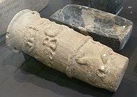 Cylinders seals at Nekhen include some of the first known scenes of an ancient Egyptian king smiting captive enemies with a mace.[22] Cylinder seals are generally thought to have been derived from Mesopotamian examples, in an instance of Egypt-Mesopotamia relations.[23]