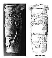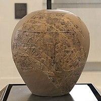 Nekhen cylindrical limestone vase. Naqada III (photograph and drawing)