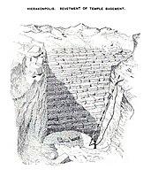 Quibell and Green discovered the "Main Deposit", a foundation deposit beneath the temple,[5] in 1894. Quibell originally was trained under Flinders Petrie, the father of modern Egyptology, however, he failed to follow Petrie's methods. The temple was a difficult site to excavate to begin with, so his excavation was poorly conducted and then, poorly documented. Specifically, the situational context of the items therein is poorly recorded and often, the reports of Quibell and Green are in contradiction.[6]