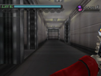 Players navigate linear levels with the selected character, able to interact with certain environmental elements and jump over obstacles or onto higher platforms.[2][7] During combat, the player is able to move freely within the environment, and has access to a variety of moves including a back step and strafing to avoid attacks. Enemies encountered in areas include humans, hostile animals, machines, and supernatural entities. The player character, who can lock onto enemies during combat, has a standard attack option, with combos achieved through consecutive attacks. An "EX Gauge" can be charged up and released to trigger a powerful attack. The player can also leap over and strike an enemy from behind—these actions open the enemy up to a high-damage attack.[6][7][8] The player can find several types of items within each level; these include various sizes of life capsules which replenish health, increase attack power for a limited time, and gain PSI points from defeated enemies. PSI points are essential when brainjacking new characters, as the Maken can only brainjack a character with a lower or equivalent PSI level.[7]