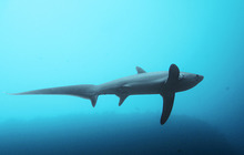 The number-one dive site of Malapascua is Monad Shoal, a natural cleaning station for fish located 7.8 kilometres (4.8 mi) from the island (11°18′30″N 124°11′30″E / 11.30833°N 124.19167°E – 30–35 minutes boat ride). The shoal is a rather unremarkable 1.5 kilometres (0.93 mi) long rock stump at the edge of a 200 metres (660 ft) drop and has a flattish top at a depth of 20 to 24 metres (66 to 79 ft). The site is best known as the only place in the world where thresher sharks can be seen regularly at and just before sunrise. They use the seamount as a cleaning station for bluestreak and moon cleaner wrasse to remove ectoparasites such as gnathiids from their skin and clean their gills and mouths. The shoal also attracts other pelagic fish such as devil rays and eagle rays. Manta rays and hammerheads are seasonal. Unfortunately most of the coral reefs of the shoal have been damaged by destructive fishing methods, as has happened all over the Philippines, and elsewhere.[2] In June 2016 a ship ran aground on the shoal, damaging three hectares (7.4 acres) of the protected area.[3][4]