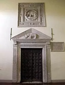 The Malatestiana Library is the only one in the world of the so-called humanistic-conventual type, which blends humanistic principles with architecture otherwise reserved for religious buildings, and has preserved its structure, fittings and codexes since its opening more than 550 years ago. The main doorway was the work of sculptor Agostino di Duccio (1418–1481). The walnut door at the main entrance dates back to 1454 and was carved by the artist Cristoforo from San Giovanni in Persiceto.