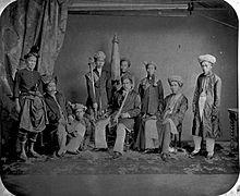 The Deutero-Malays are Iron Age people descended partly from the subsequent Austronesian peoples who came equipped with more advanced farming techniques and new knowledge of metals.[42][43][44] The Deutero-Malay settlers were not nomadic compared to their predecessors, instead they settled and established kampungs which serve as the main units in the society. These kampungs were normally situated on the riverbanks or coastal areas and generally self-sufficient in food and other necessities. By the end of the last century BC, these kampungs beginning to engage in some trade with the outside world.[45] The Deutero-Malays are considered the direct ancestors of present-day Malay people.[46] Notable Proto-Malays of today are Moken, Jakun, Orang Kuala, Temuan and Orang Kanaq.[47]