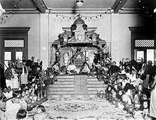 The advent of the Malacca Sultanate in the 15th century triggered a major revolution in Malay history, the significance of which lies in its far-reaching political and cultural legacy. Common definitive markers of Malayness – the religion of Islam, the Malay language and traditions – are thought to have been promulgated during this era, resulting in the ethnogenesis of the Malay as a major ethnoreligious group in the region.[17] In literature, architecture, culinary traditions, traditional dress, performing arts, martial arts and royal court traditions, Malacca set a standard that later Malay sultanates emulated. The golden age of the Malay sultanates in the Malay Peninsula, Sumatra and Borneo saw many of their inhabitants, particularly from various tribal communities like the Batak, Dayak, Orang Asli and the Orang Laut become subject to Islamisation and Malayisation.[18] Today, some Malays have recent forebears from other parts of Maritime Southeast Asia, termed as anak dagang ("traders") and who predominantly consist of Acehnese, Banjar, Bugis, Minangkabau people and the Javanese, while some are also descended from more recent immigrants from other countries.[19]