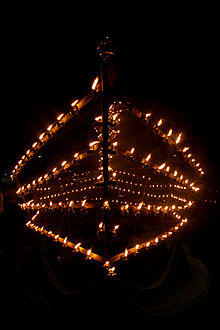 The Islamic faith arrived on the shores of what are now the states of Kedah, Perak, Kelantan and Terengganu, from around the 12th century.[69] The earliest archaeological evidence of Islam from the Malay peninsula is the Terengganu Inscription Stone dating from the 14th century found in Terengganu state, Malaysia.[68]
