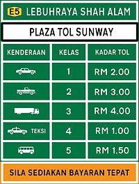Every expressway and highway in Malaysia has a toll system, which is either a closed toll system or open toll system. All transactions are in Malaysian Ringgit (RM)