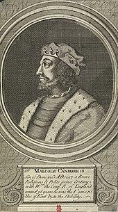Malcolm III (Scottish Gaelic: Máel Coluim mac Donnchada; c. 26 March 1031 – 13 November 1093 (age 62)) was King of Scots from 1058 to 1093. He was later nicknamed "Canmore" ("ceann mòr", Gaelic for "Great Chief": "ceann" denotes "leader", "head" (of state) and "mòr" denotes "pre-eminent", "great", and "big").[1][2] Malcolm's long reign of 35 years preceded the beginning of the Scoto-Norman age. Henry I of England and Eustace III of Boulogne were his sons-in-law, making him the maternal grandfather of Empress Matilda, William Adelin and Matilda of Boulogne. All three of them were prominent in English politics during the 12th century.