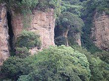 The best-known community outside of the municipal seat is Chalma, which is famous for being the sanctuary of the Lord of Chalma, an apparition of a crucified black Christ. Its small population is almost entirely dedicated to meeting the needs of pilgrims who come throughout the year.[17] According to legend, the Christ figure miraculously appeared at a cave where the pre-Hispanic local people used to worship a deity named Oxtoteotl.[18] Pilgrimages to this Christian sanctuary follow many of the patterns of the old pagan rituals, including walking the narrow paths to the town itself, bathing in the waters of a special fresh-water spring and dancing at the sanctuary.[19] Between Malinalco and Chalma there are large boulders, which according to legend, are people who have been turned to stone because they disobeyed this god. Near Chalma, because of the sanctuary, many famous people have bought ranches and other property. These include Verónica Castro, Daniela Romo, ex regent of Mexico City Oscar Espinoza Villareal and many politicians from Mexico State.[7]