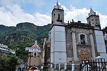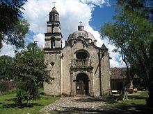 The Franciscans were the first to arrive and begin the evangelization process, followed by the Dominicans. However, it was the Augustinians who stayed and built the monastery from which evangelization would center. This monastery was originally called San Cristobál but later the named was changed to Divino Salvador. After the construction of the Temple of the Divino Salvador, neighborhood chapels were constructed in the various parts of town. It is likely that these chapels started out as simple thatched roof structures.[1] During the colonial period, a communal water supply system was developed, taking advantage of the natural water flows in the box canyon that surrounds the town.[8] The Jalmolonga Hacienda was one the economic focuses of the area, which was part of the Rodriguez encomienda. Later, when the Jesuits came, they took over this hacienda, which was productive enough to support many of the expenses of the San Pedro and San Pablo College located in Mexico City. When the Jesuits were expelled in the 18th century, this land was eventually sold to the Count of Regla, Manuel Romero de Terreros.[1]