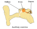 The malleus is one of three ossicles in the middle ear which transmit sound from the tympanic membrane (ear drum) to the inner ear. The malleus receives vibrations from the tympanic membrane and transmits this to the incus.[2]