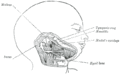 The right membrana tympani with the hammer and the chorda tympani, viewed from within, from behind, and from above (Malleus visible at center) | |