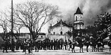 During the Philippine–American War, the US Army decided to strategize their "Northern Campaign" by moving the US soldiers forward to Malolos in order to defeat the Filipino forces in town. Aguinaldo and his men decided to escape before the American Army arrived in the capital. While escaping to San Fernando, Pampanga, Aguinaldo ordered General Antonio Luna to burn down the Malolos Church, as part of his scorched earth policy so that anything left would be rendered useless.