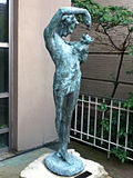 After her father's death in 1910, Hoffman moved to Europe with her mother.[14] They first visited London, where they attended the ballet of Alexander Glazunov's Autumn Bacchanale. Hoffman was inspired by the combination of motion and control exhibited by Mikhail Mordkin and Anna Pavlova.[1] Mother and daughter visited Italy before moving to Paris.[14] She worked as a studio assistant for Janet Scudder. During the nights she studied at Académie Colarossi. She studied with Emanuele Rosales[1] and after five unsuccessful attempts, she eventually was accepted as a student by Auguste Rodin.[2][15] She caught his attention when she quoted a poem that he attempted to remember by Alfred de Musset.[2] During their lessons, he advised her, "Do not be afraid of realism".[16] She made a trip to Manhattan in 1912 to dissect bodies at the College of Physicians and Surgeons at Columbia University.[1] From Rosales and Rodin, she learned about bronze casting, chasing, and finishing at foundries.[3] The Hoffman women lived in Paris until the outbreak of World War I in 1914.[1]