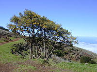 Māmane is an endemic species of Hawaii, and can be found on all main islands except Niʻihau and Kahoʻolawe. It inhabits low shrublands, high shrublands, dry forests, mixed mesic forests, and, rarely, wet forests.[3] It can grow at elevations of 30–2,900 m (98–9,514 ft), being limited by the tree line. Māmane is most common and grows the tallest in montane dry forests at elevations of 1,220–2,440 m (4,000–8,010 ft).[4] Māmane and naio (Myoporum sandwicense) define a dry woodland ecotone on the subalpine areas of East Maui (Haleakalā) and the Island of Hawaiʻi.