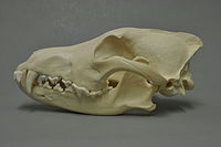 Therapsids, a group of synapsids, descended from pelycosaurs in the Middle Permian, about 265 million years ago, and became the dominant land vertebrates.[24] They differ from basal eupelycosaurs in several features of the skull and jaws, including: larger skulls and incisors which are equal in size in therapsids, but not for eupelycosaurs.[24] The therapsid lineage leading to mammals went through a series of stages, beginning with animals that were very similar to their pelycosaur ancestors and ending with probainognathian cynodonts, some of which could easily be mistaken for mammals. Those stages were characterized by:[26]