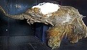 In 2012, a juvenile was found in Siberia, which had man-made cut marks. Scientists estimated its age at death to be 2.5 years, and nicknamed it "Yuka". Its skull and pelvis had been removed prior to discovery, but were found nearby.[95][141] After being discovered, the skin of "Yuka" was prepared to produce a taxidermy mount.[40] In 2019, a group of researchers managed to obtain signs of biological activity after transferring nuclei of "Yuka" into mouse oocytes.[142]