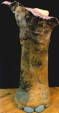 Woolly mammoth bones were used as construction material for dwellings by both Neanderthals and modern humans during the ice age.[90] More than 70 such dwellings are known, mainly from the Russian Plain. The bases of the huts were circular, and ranged from 8 to 24 square metres (86 to 258 sq ft). The arrangement of dwellings varied, and ranged from 1 to 20 m (3.3 to 65.6 ft) apart, depending on location. Large bones were used as foundations for the huts, tusks for the entrances, and the roofs were probably skins held in place by bones or tusks. Some huts had floors that extended 40 cm (16 in) below ground. Some huts included fireplaces, which used bones as fuel, probably because wood was scarce. Some of the bones used for materials may have come from mammoths killed by humans, but the state of the bones, and the fact that bones used to build a single dwelling varied by several thousands of years in age, suggests that they were collected remains of long-dead animals. Woolly mammoth bones were made into various tools, furniture, and musical instruments. Large bones, such as shoulder blades, were used to cover dead human bodies during burial.[91]