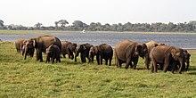 Like modern elephants, woolly mammoths were likely very social and lived in matriarchal (female-led) family groups. This is supported by fossil assemblages and cave paintings showing groups. So, most of their other social behaviours probably were similar to those of modern elephants. How many mammoths lived at one location at a time is unknown, as fossil deposits are often accumulations of individuals that died over long periods of time. The numbers likely varied by season and lifecycle events. Modern elephants can form large herds, sometimes consisting of multiple family groups, and these herds can include thousands of animals migrating together. Mammoths may have formed large herds more often, since animals that live in open areas are more likely to do this than those in forested areas.[53] Trackways made by a woolly mammoth herd 11,300–11,000 years ago have been found in the St. Mary Reservoir in Canada, showing that in this case almost equal numbers of adults, subadults, and juveniles were found. The adults had a stride of 2 m (6.6 ft), and the juveniles ran to keep up.[54]