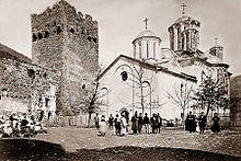 The Manasija Monastery (Serbian Cyrillic: Манасија, pronounced [manǎsija]), also known as Resava (Ресава, [rɛ̌saʋa]), is a Serbian Orthodox monastery near Despotovac, Serbia, founded by Despot Stefan Lazarević between 1406[1] and 1418. The church is dedicated to the Holy Trinity. It is one of the most significant monuments of medieval Serbian culture and it belongs to the "Morava school". The monastery is surrounded by massive walls and towers. Immediately following its foundation, the monastery became the cultural centre of the Serbian Despotate. Its School of Resava was well known for its manuscripts and translations throughout the 15th and 16th centuries, even after the fall of the Despotate to the Ottoman Turks. Manasija complex was declared Monument of Culture of Exceptional Importance in 1979, and it is protected by Republic of Serbia, and monastery have entered a UNESCO Tentative List Process in 2010.[2]