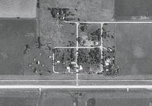 Manchester was an extremely small and compact town, with the central township abutting the intersection of US Highway 14 and 425th Avenue in rural Kingsbury County and surrounded on all sides by miles of farmland. The tornado struck the town from the south while doing strong F3/weak F4 damage, and was easily powerful enough to destroy the handful of elderly structures remaining in the town center (including the town post office), as well as several outlying buildings along US-14. According to Dan Kight of the Kingsbury County Sheriff's department: "There's a business that's partially left, but everything else is gone," noting only three or four families lived in Manchester. Also according to Kight, some residents were transported to the hospital with injuries.[6]