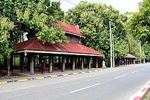 In June 1857, the former royal palace of Amarapura was dismantled and moved by elephants to the new location at the foot of Mandalay Hill, although construction of the palace compound was officially completed only two years later, on Monday, 23 May 1859.[10]