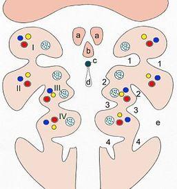 - 1–4: pharyngeal pouches (inside) and/or pharyngeal grooves (outside)