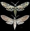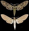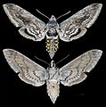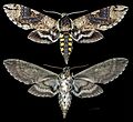 Manduca is a genus of moths in the family Sphingidae, the hawkmoths. The genus is used as a model in the biological sciences. The tobacco hornworm (Manduca sexta) and the tomato hornworm (M. quinquemaculata) in particular have been well studied.[1] The genus was erected by Jacob Hübner in 1807.