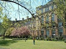 Sinclair House was built partly on the site of Holland Cottage which were destroyed during the German air raids of November 1940.[9] Opened in 1978, the building is named after the Lady Sinclair of Cleeve, who was involved in the affairs of the University for many years and served on the hall advisory committee of Manor Hall until her death. The building consists of twelve flats, each housing five students, and ten ground floor flats for overseas postgraduate students and their families.[8]