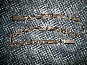 Typically the length of the forged chain could vary from around 12 inches (30 cm) up to 48 inches (120 cm). The chain links could have many different shapes including round, elliptical, and egg-shaped. The thickness of the chain also varied. Usually the first link of chain attached to the weight was round and often larger and thicker than the rest of the links of the chain.[2]