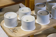 The factory retains a huge collection of moulds, going back to its beginning, and mixes the production of old and new shapes. Slipcasting is the main technique for "hollow" wares like vases.