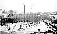 The Nasmyth, Gaskell and Company's Bridgewater Foundry, which began operation in 1836, was one of the earliest factories to use modern materials handling such as cranes and rail tracks through the buildings for handling heavy items.[30]