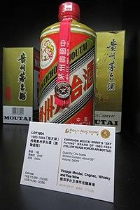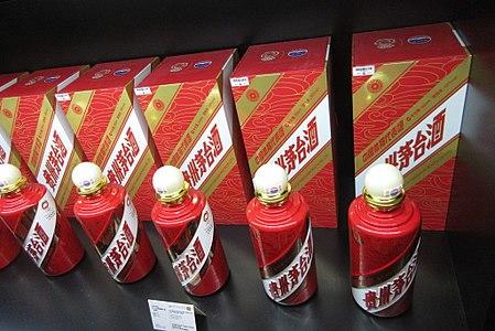 Maotai or Moutai is a style of baijiu, a distilled Chinese liquor (spirit), made in the town of Maotai in China's Guizhou province. Produced by the state-owned Kweichow Moutai Company, the beverage is distilled from fermented sorghum and now comes in several different varieties.[1]