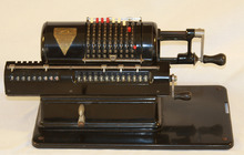 Carrying to the next higher order was done (effectively) by a 10:1 gear ratio, rather like traditional watthour-meter dials. This was probably unique in a calculator. While running consecutive 'add' cycles to develop a product in multiplication, much of the mechanism was running at constant speeds. All other mechanical calculators had result dials that moved only at one speed, but for different amounts of time, naturally for longer times when larger digits were to be entered. They started quickly, ran at one speed, and stopped quickly. (They also had mechanisms to prevent overshoot (known as coasting) when they stopped.)