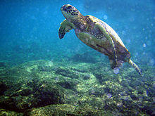 Reptiles which inhabit or frequent the sea include sea turtles, sea snakes, terrapins, the marine iguana, and the saltwater crocodile. Most extant marine reptiles, except for some sea snakes, are oviparous and need to return to land to lay their eggs. Thus most species, excepting sea turtles, spend most of their lives on or near land rather than in the ocean. Despite their marine adaptations, most sea snakes prefer shallow waters nearby land, around islands, especially waters that are somewhat sheltered, as well as near estuaries.[23][24] Some extinct marine reptiles, such as ichthyosaurs, evolved to be viviparous and had no requirement to return to land.