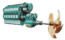 Most modern larger merchant ships use either slow speed, two stroke, crosshead engines, or medium speed, four stroke, trunk engines. Some smaller vessels may use high speed diesel engines.