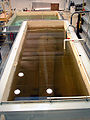 Many artifacts from Monitor have been brought to the museum, including her turret, propeller, anchor, engine, and some personal effects of the crew. For several years, they were conserved in special tanks to stabilize the metal. The USS Monitor Center officially opened on March 9, 2007, and displays include a full-scale replica, the original recovered turret, and many artifacts and related items.[8][9] Current efforts are focused on restoring the engine.[10]