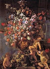 Once established, he created amicable working relationships with Cassiano dal Pozzo[3] and the Barberini family; all noted patrons of the arts, who not only collected but commissioned many significant works. Notably, illustrations for De florum cultura by Giovanni Battista Ferrari, which were commissioned by Cardinal Francesco Barberini. His popularity with the Barberinis led to other notable clients in the church, including Cardinal Giulio Rospigliosi (who would become Pope Clement IX), and Cardinal Mario Theodoli, who promoted his works in France. He also received orders from the banker, Agostino Chigi. During this period, his works began to show Flemish influence; especially that of Daniel Seghers.