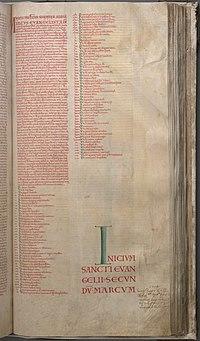Mark 1:1–5 (Latin) in Codex Gigas (13th century). | |