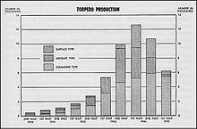 Only two thousand submarine torpedoes were built by all three Navy factories (Newport, Alexandria, and Keyport) during 1942.[26][27] This exacerbated torpedo shortages; the Pacific Fleet Submarine Force had fired 1,442 torpedoes since war began.[32] "Until the spring of 1945, supply was a problem" for the Mark 14 torpedo.[33]