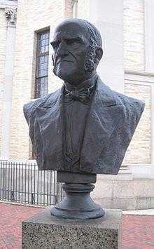 President James Garfield had attended Williams College in the 1850s. At an 1871 dinner of Williams alumni, Garfield paid tribute to Hopkins, defining an ideal college as Hopkins and a student together in a log cabin. The epigram became more widely known in the pithier form retold by John James Ingalls, in which a log was substituted for the log cabin.[3] In the later judgment of university historian Frederick Rudolph, "no one can properly address himself to the question of higher education in the United States without paying homage in some way to the aphorism of the log and to Mark Hopkins".[4] In his 1903 essay "The Talented Tenth," W. E. B. Du Bois opined, "There was a time when the American people believed pretty devoutly that a log of wood with a boy at one end and Mark Hopkins at the other, represented the highest ideal of human training. But in these eager days it would seem that we have changed all that and think it necessary to add a couple of saw-mills and a hammer to this outfit, and, at a pinch, to dispense with the services of Mark Hopkins." In 1915 Hopkins was elected into the American Hall of Fame.[5]